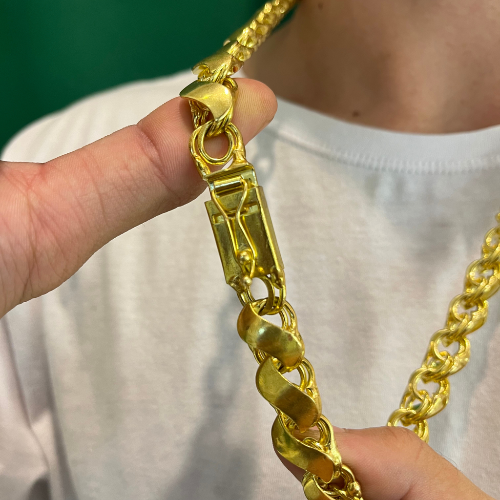 Se você busca uma corrente com presença forte, sem exageros, a Friso S 12mm é a escolha perfeita. Seu design diferenciado, com elos encorpados e bem trabalhados, traz um visual impactante e moderno, ideal para quem sabe que os detalhes fazem toda a diferença.
