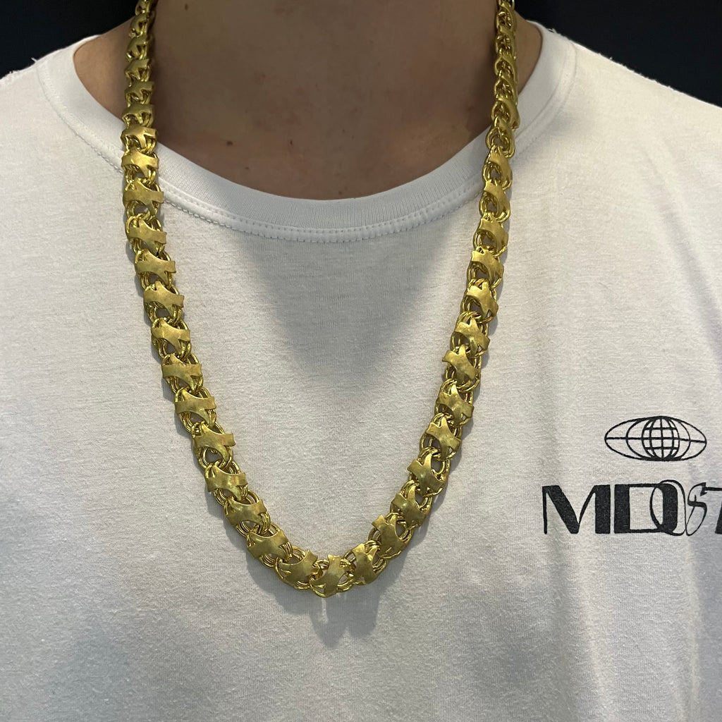 Produzida a partir de moedas antigas autênticas (1920-1950), essa corrente mantém sua tonalidade dourada natural, sem necessidade de banhos químicos. Feita para durar, ela resiste à água, ao tempo e ao uso diário sem perder seu brilho.