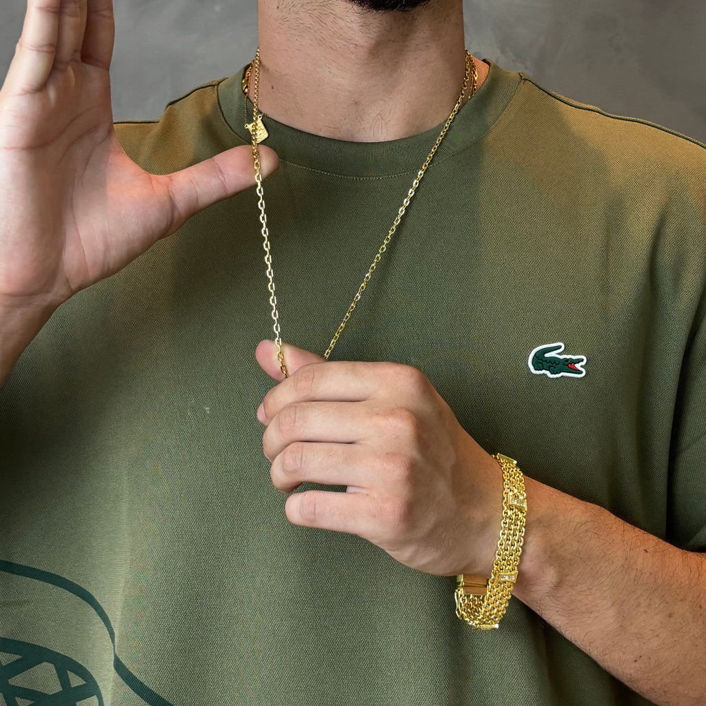 Aquela peça fina que entrega respeito. A Cadeado 3mm é pra quem valoriza elegância pura: leve, reta e com presença silenciosa. Brilha no peito com firmeza, sem precisar gritar.